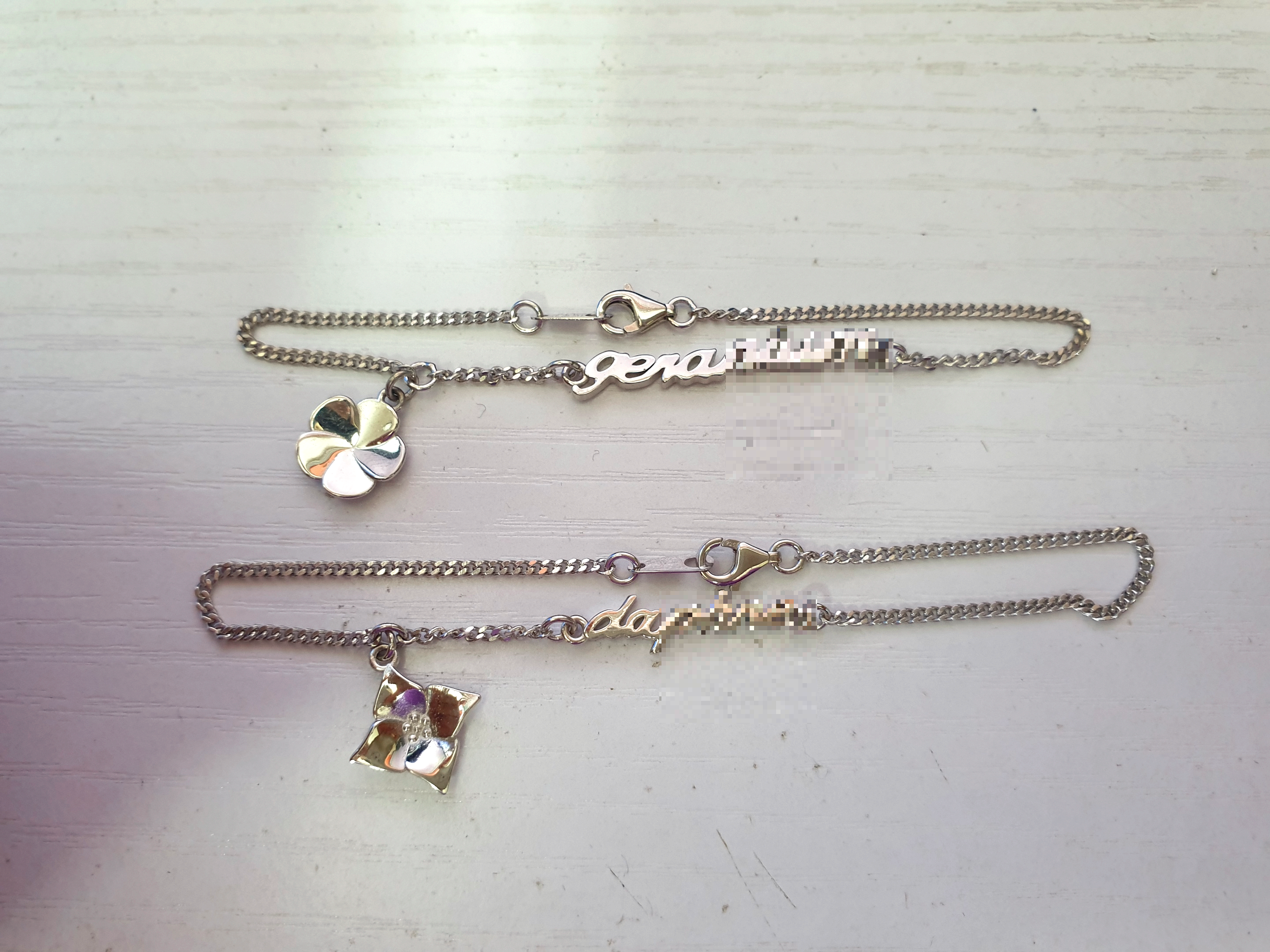 일반 이니셜 팔찌에 charm 장식 스타일로 탄생화를 딸랑거리게 연결한 형태로 만들었습니다.