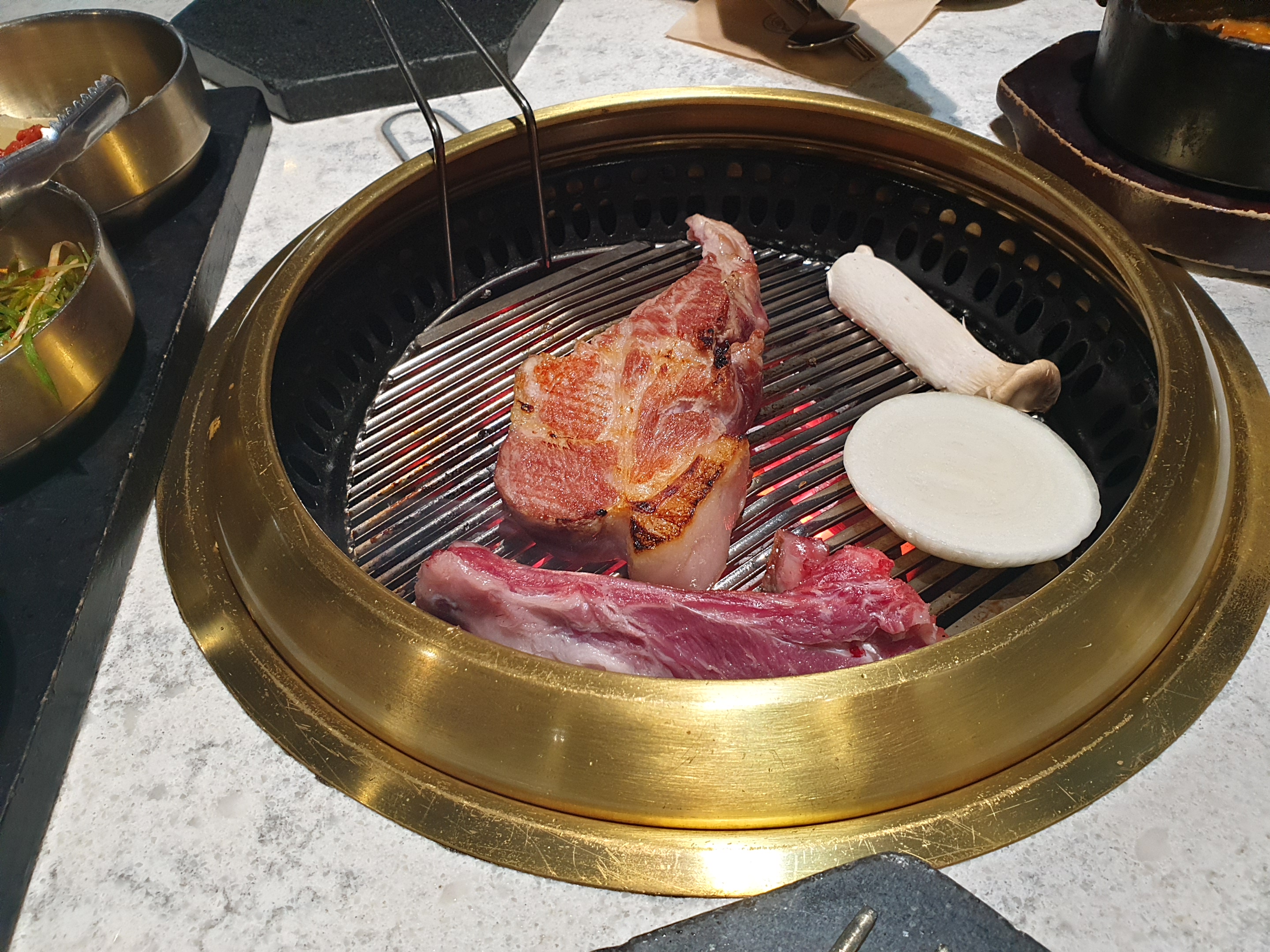 확실히 숯불에는 고기를 두툼하게 굽는게 맛이 훨 좋다고 느껴지더라구요.