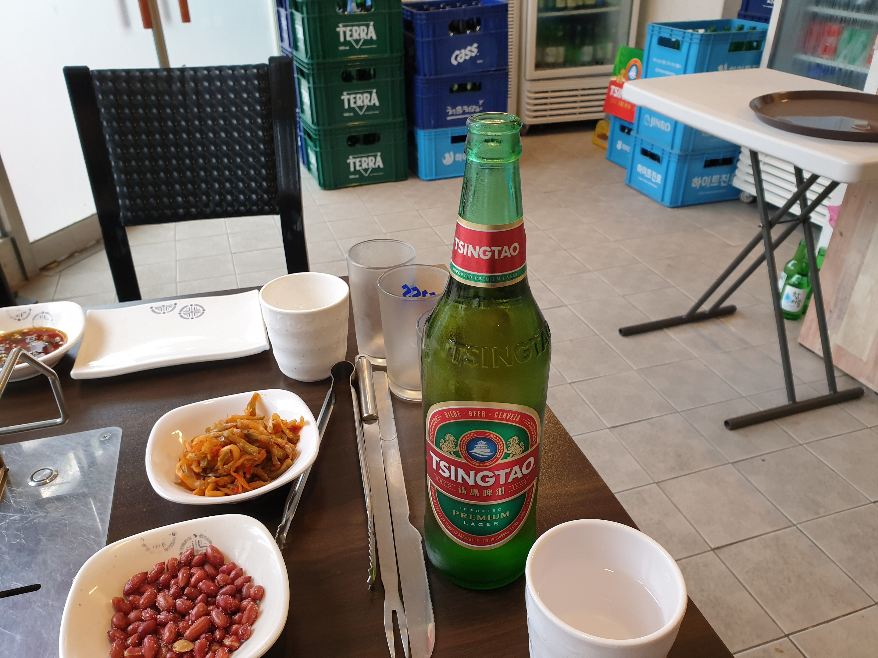 반조리 되어서 나오는데 나오기 전에 칭다오 한병 시켰습니다.