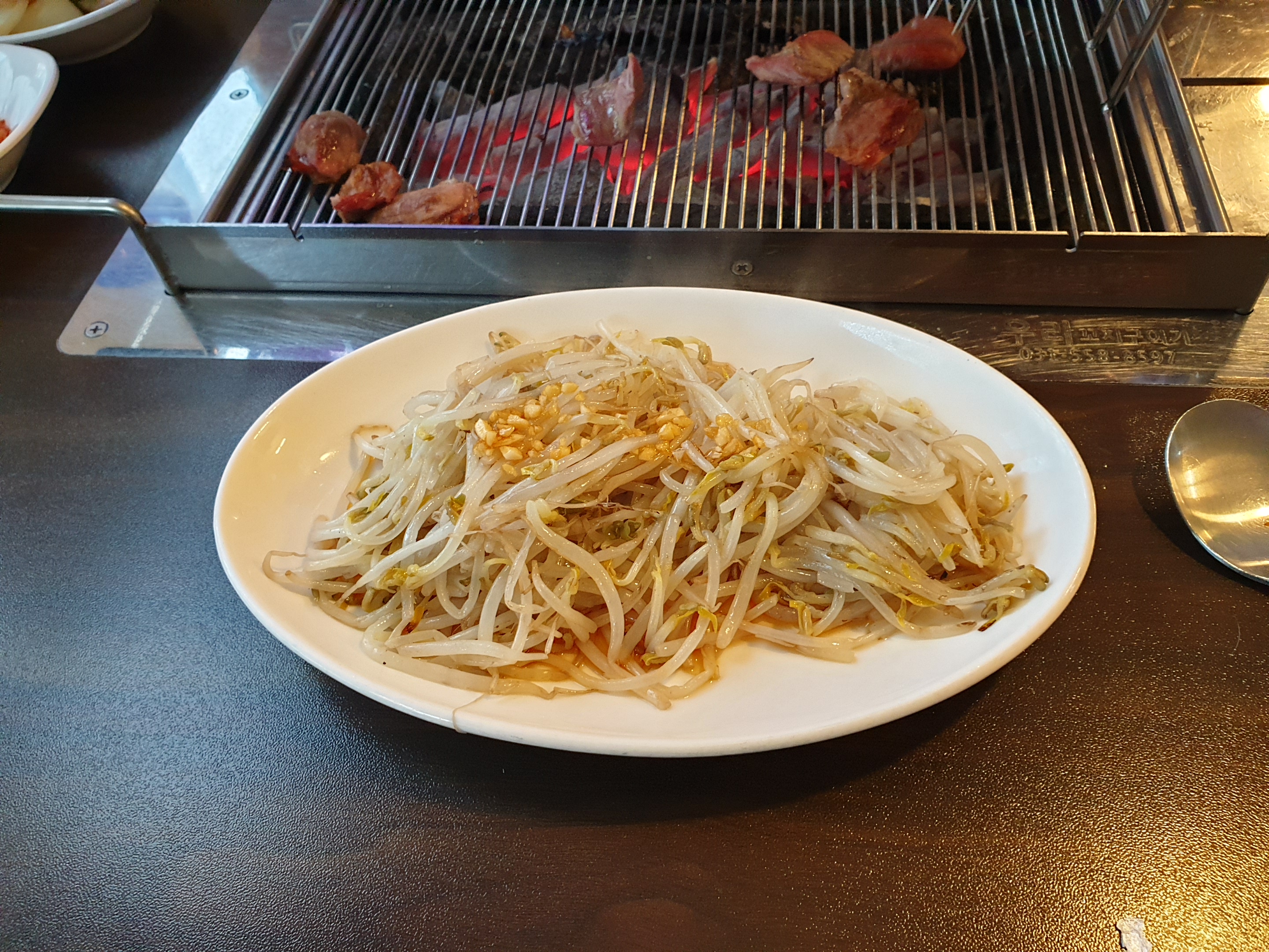 구이가 어느정도 되어가니까 숙주 나물을 볶아 주셨습니다.