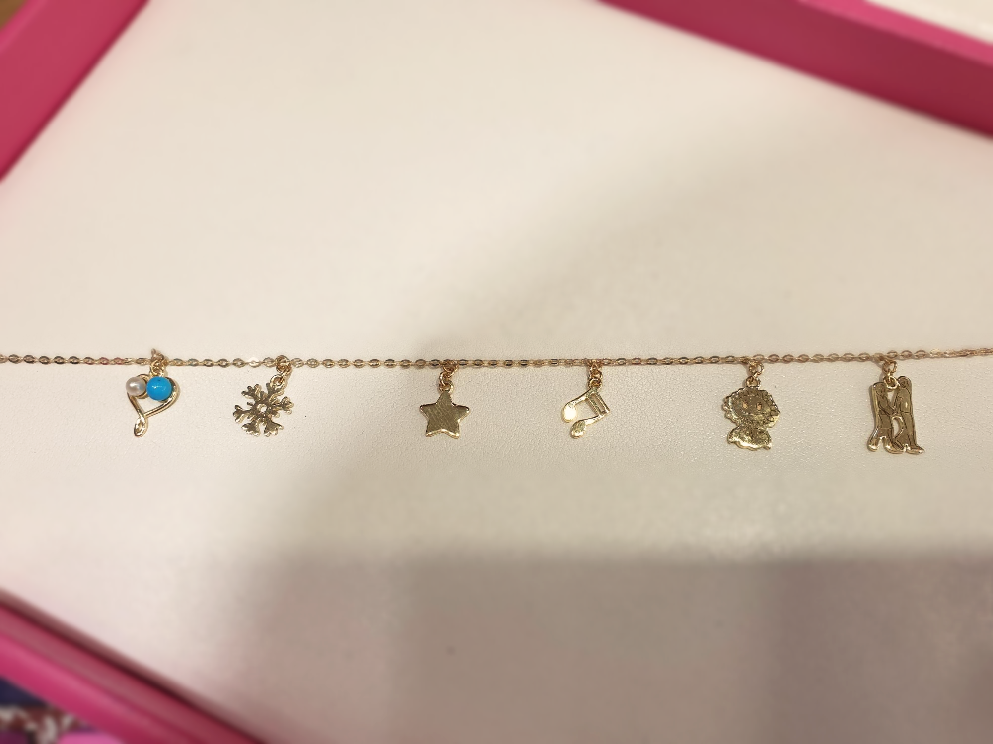 개인의 추억이라던가 의미부여가 되는 상징들을 5~8개 정도의 참(charm)으로 만들어서 간직하는 팔찌로 100% 맞춤 제작으로 이루어지는 제품입니다.