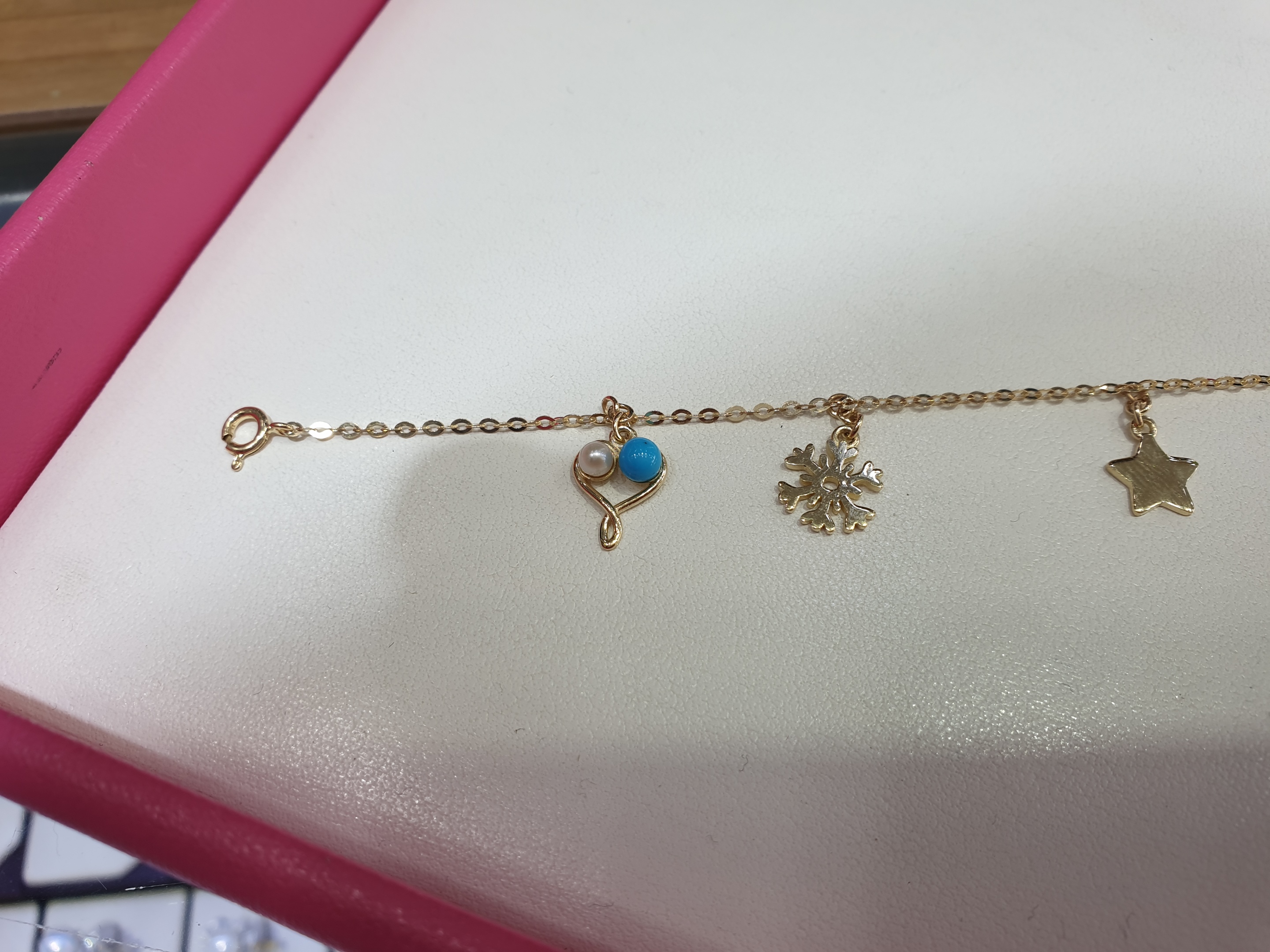 체인의 길이는 보통 여성 성인 기성 사이즈 17.5cm에 여유줄을 3cm 마무리는 납작하트로 들어갑니다.